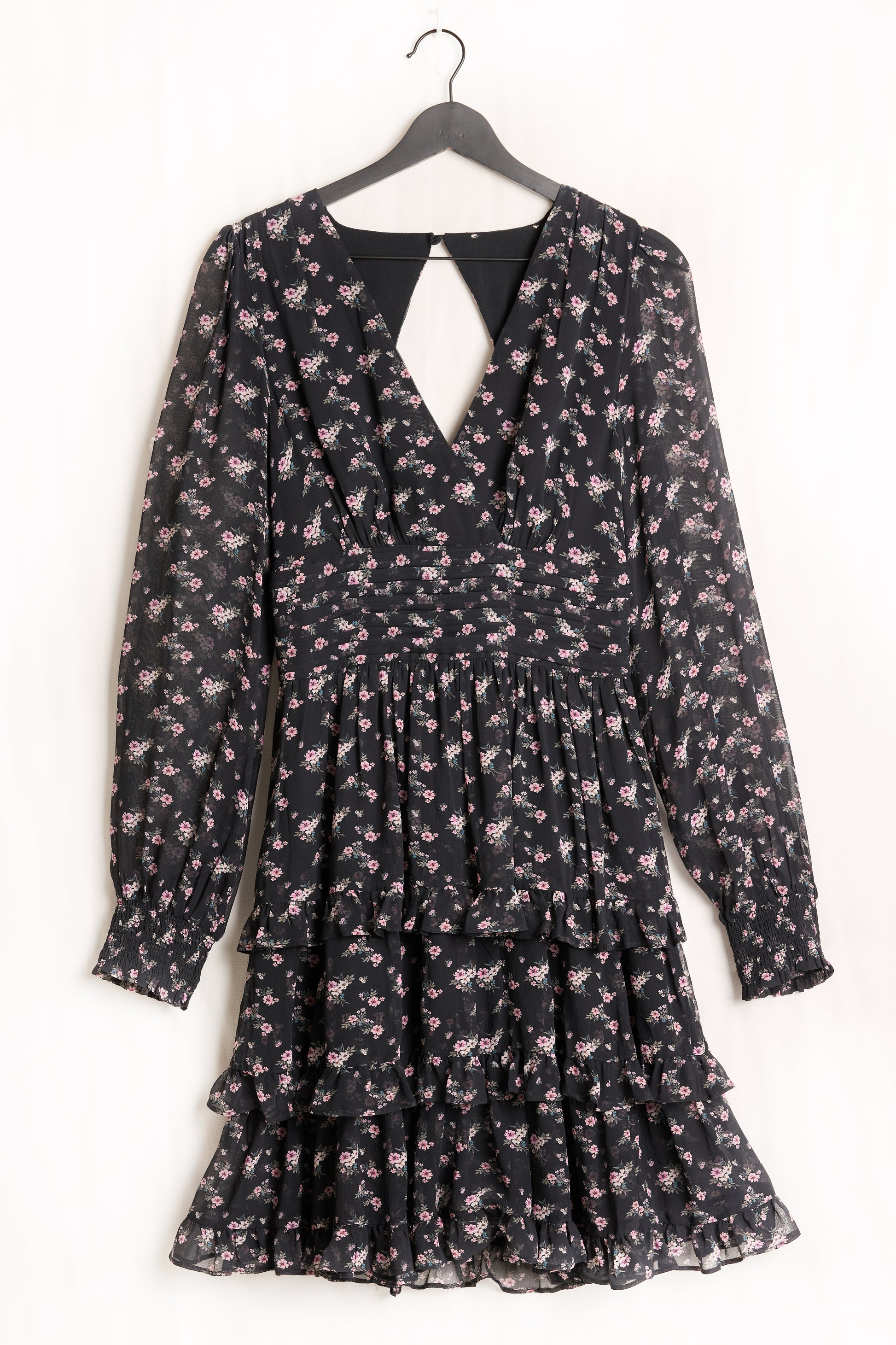 Lekker kjole med åpning i ryggen, i 100% viskose georgette. De ulike lagene i skjørtet gir en feminin effekt, og det innebygde beltet gir en flatterende fasong. Det er smock/stretch i ryggen og nederst på ermet. Kjolen er helfôret i kroppen og har lett transparente ermer. Det er stoff-trukne knapp i nakken og glidelås i siden.